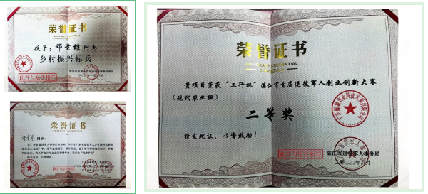 2007年獲得精武館杯”中國功夫vs職業(yè)搏擊拳王56公斤級亞軍;2010年度總隊搏擊骨干集訓(xùn)考核競賽中,榮獲個人總分第三名;2019年當(dāng)選團(tuán)結(jié)村委會主任/黨支部書記;2020年8月參加湛江市首屆退役軍人創(chuàng)業(yè)創(chuàng)新大賽“現(xiàn)代農(nóng)業(yè)組”獲得二等獎;2021年11月參加廣東省退役軍人鄉(xiāng)村振興雙新雙創(chuàng)培訓(xùn)示范班評為優(yōu)秀學(xué)員;2022年1月獲得湛江市退役士兵就業(yè)創(chuàng)業(yè)服務(wù)促進(jìn)會頒發(fā)的現(xiàn)代農(nóng)業(yè)帶頭人稱號;2022年1月獲得湛江市退役士兵就業(yè)創(chuàng)業(yè)服務(wù)促進(jìn)會頒發(fā)的鄉(xiāng)村振興標(biāo)兵稱號;
