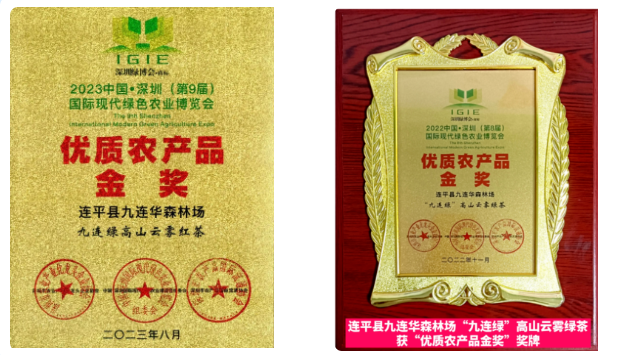 河源市連平縣九連華森林場(chǎng)參展中國(guó)·深圳(第9屆)國(guó)際現(xiàn)代綠色農(nóng)業(yè)博會(huì) 簡(jiǎn)稱:第九屆深圳綠博會(huì),重點(diǎn)展出了自己生產(chǎn)的“九連綠”高山云霧紅茶、高山云霧綠茶、高山茶油、蜂蜜、五指毛桃等優(yōu)質(zhì)農(nóng)產(chǎn)品,受到大會(huì)組委會(huì)及消費(fèi)者的高度評(píng)價(jià)。經(jīng)過深圳綠博會(huì)評(píng)審委員會(huì)專家的嚴(yán)格評(píng)審和消費(fèi)者的現(xiàn)場(chǎng)品評(píng),九連綠高山云霧茶連續(xù)兩屆獲得深圳綠博會(huì)的優(yōu)質(zhì)農(nóng)產(chǎn)品“金獎(jiǎng)”。專家們認(rèn)為“九連綠”高山云霧紅茶具有條索細(xì)、緊卷完整,湯色紅亮而透明,滋味鮮爽而濃醇,葉底軟,略帶栗香之味,入口順滑,甘甜,回甘生津等特點(diǎn),是真正意義上的生態(tài)茶。