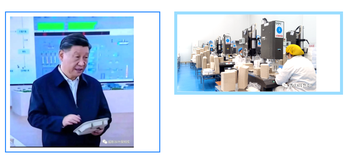 習(xí)總書記手中拿的可降解環(huán)保餐具是福期派垚能環(huán)??萍脊旧a(chǎn)的白色四格餐盤,該公司系列產(chǎn)品在第九屆深圳綠博會(huì)上參展,深受深圳餐飲業(yè)和包裝行業(yè)的青睞。公司產(chǎn)品主要利用蔗渣漿等天然植物纖維材料,通過模具塑造成型,是塑料制品的良好替代,現(xiàn)場(chǎng)展示的產(chǎn)品還有龍蝦盤、醫(yī)療盤、??鄞虬械鹊?,廣泛應(yīng)用于餐飲、快消、醫(yī)療、工業(yè)等領(lǐng)域。